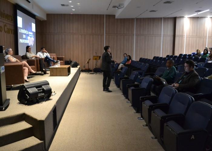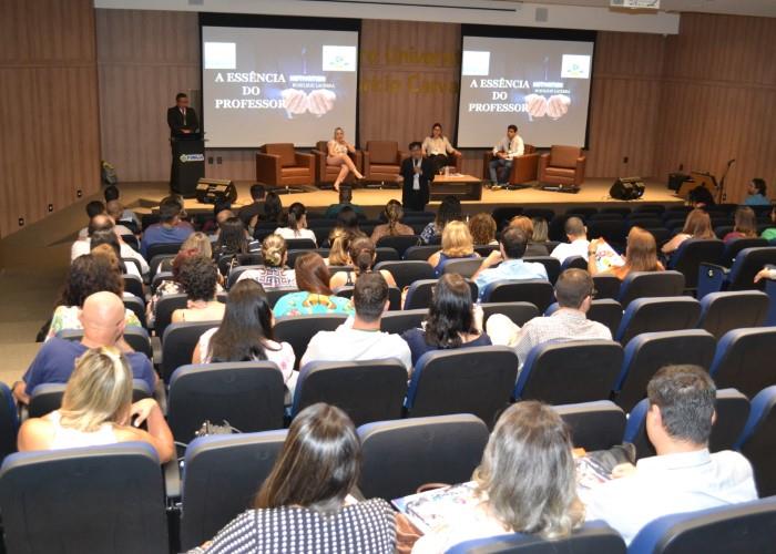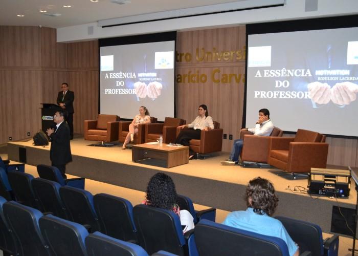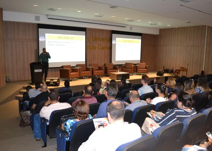 A primeira Palestra do dia foi com o Professor Esp. Ronilson Silva Lacerda, que palestrou sobre o tema  “A essência do professor”, em seguida do Prof. Pós DR. Leonardo de Azevedo Calderon, que palestrou sobre o tema  “Pesquisa e extensão”. Além das palestras, durante toda semana acontecerão varias oficinas de aprendizagem para os professores. Veja como foi a abertura da semana pedagógica em nossa galeria de fotos: