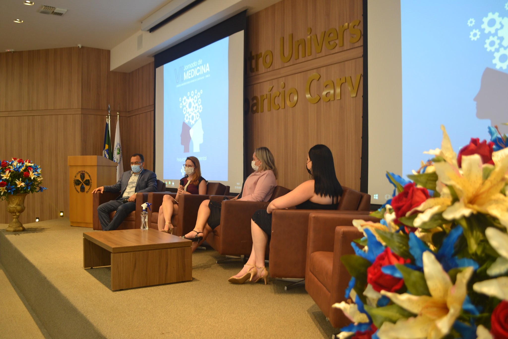 Os participantes convidados da Mesa Interativa foram: Drª Ana Carolina Terra, Dr. Wendell Jânio, Drª Eva Viviane Cecanho. Os mesmos debateram sobre o impacto que a saúde mental sofreu durante o auge da pandemia e neste período de retorno as atividades.