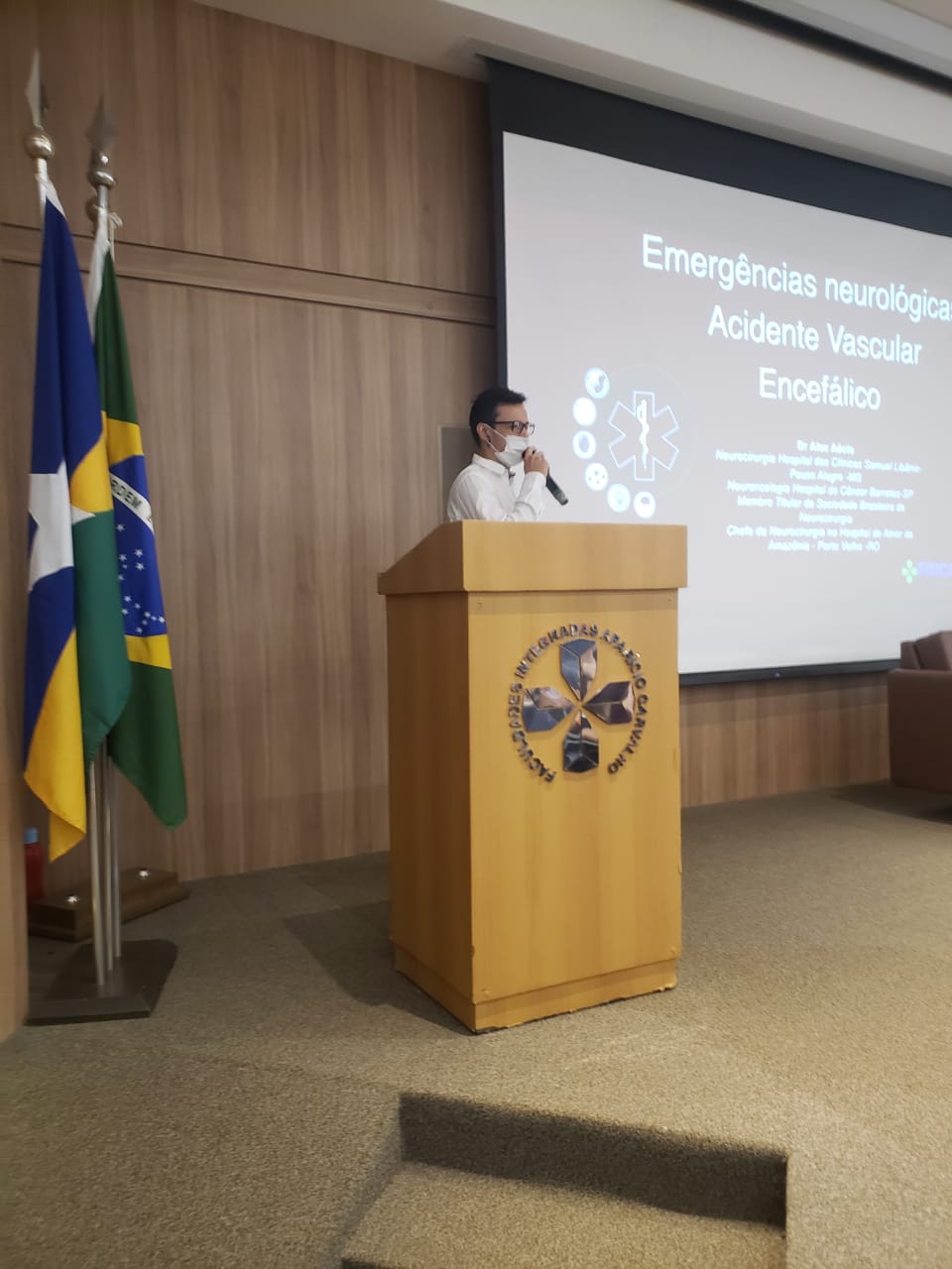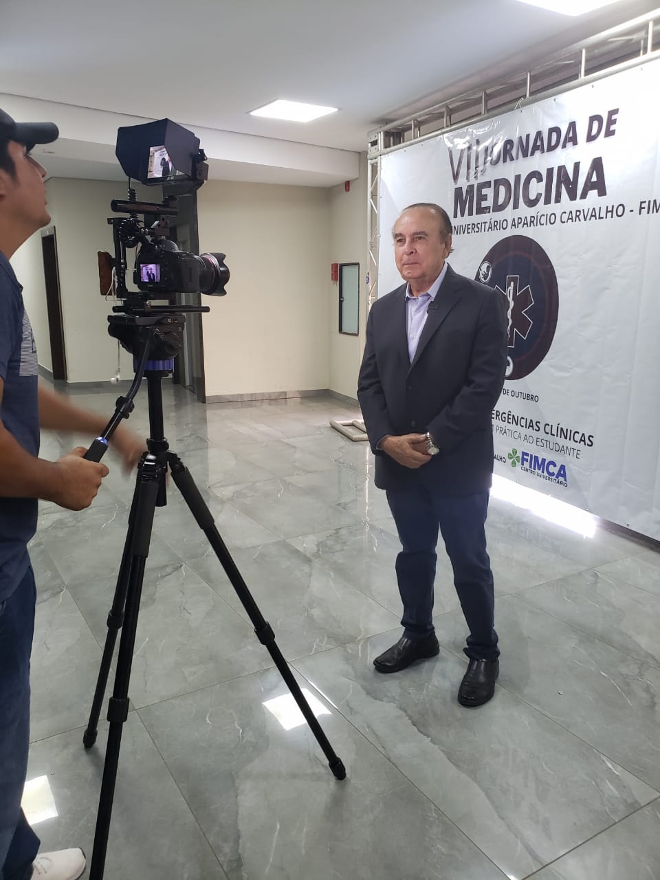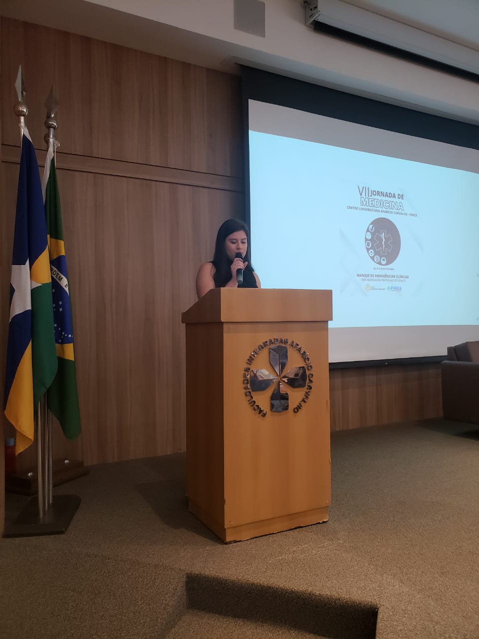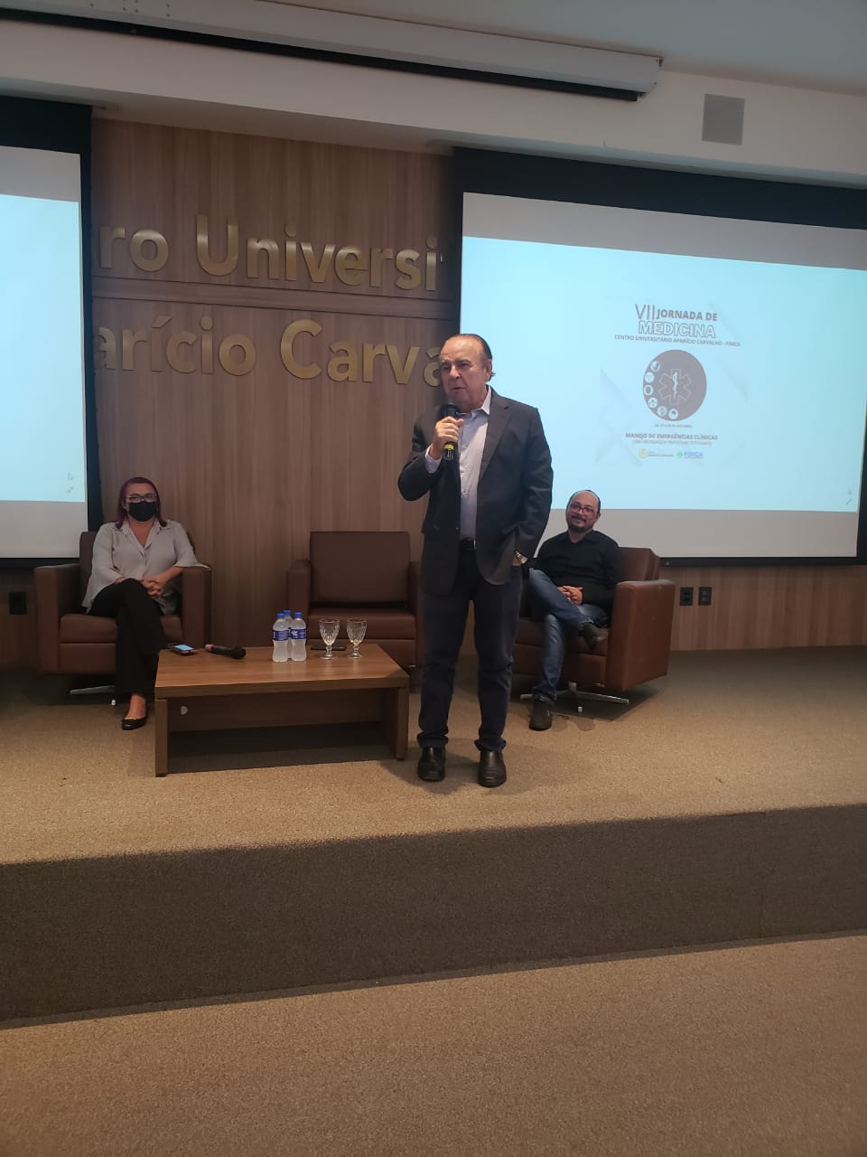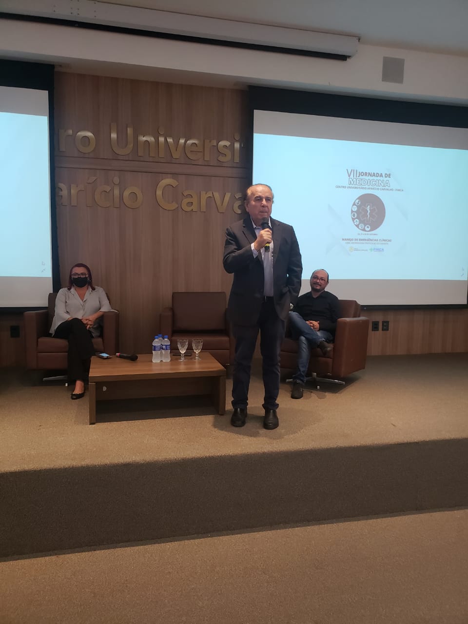 O Dr. Aparício Carvalho, reitor da FIMCA, disse que é uma imensa satisfação fazer a abertura num anfiteatro lotado da VII Jornada de Medicina com um tema tão importante: o manejo da emergência clínica, e logicamente, trazendo novas perspectivas aos acadêmicos de medicina, não só nossos, mas de todo o estado de Rondônia. Isso nos traz uma esperança muito grande em termo da formação destes profissionais. Quero dizer que essa coordenação desse evento realmente primorou, com um tema tão importante, e eu acredito que será um tremendo sucesso”.