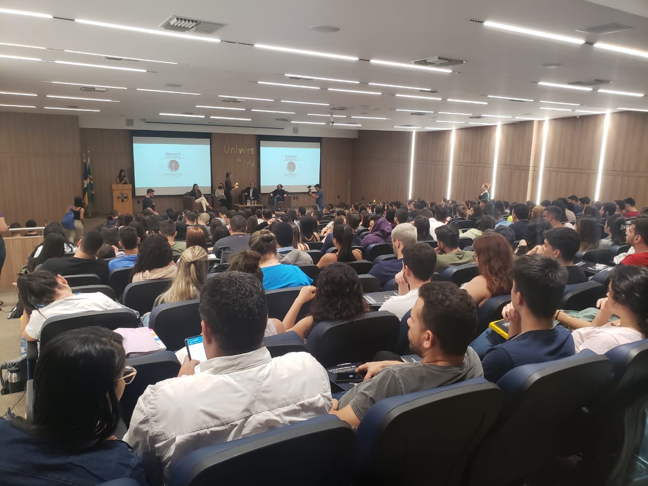 Os palestrantes da abertura foram o Dr. Alexandre Falqueti, especialista em Cirurgia Geral e Urologia; e a Dra. Caroline Martins, especialista em Endocrinologia, com residência em Clínica Médica.